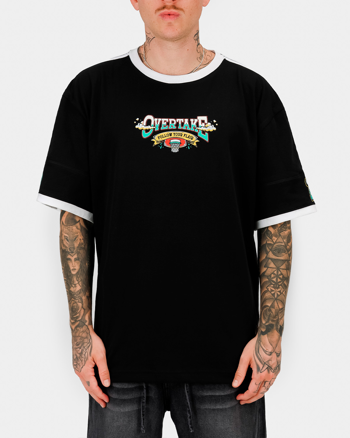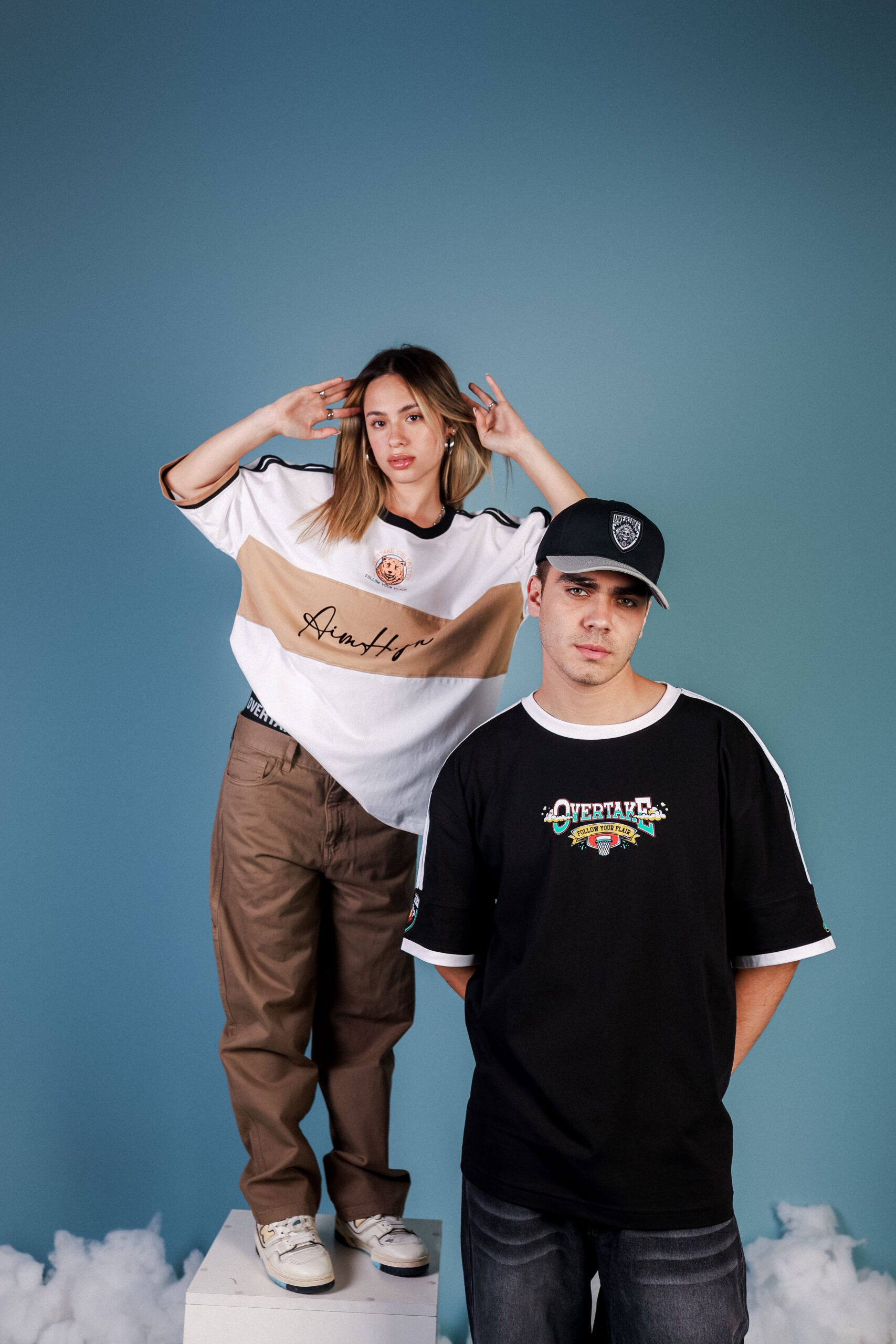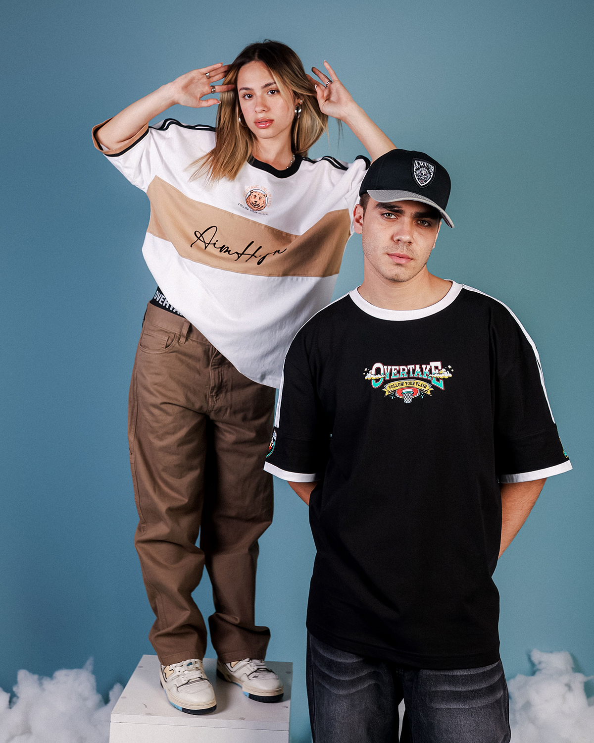 - Estampado 3D en diseño frontal “OVERTAKE”