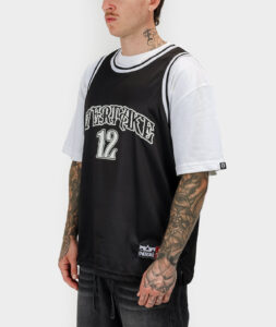 El modelo mide 1.78, pesa 65 kg y está usando talla L