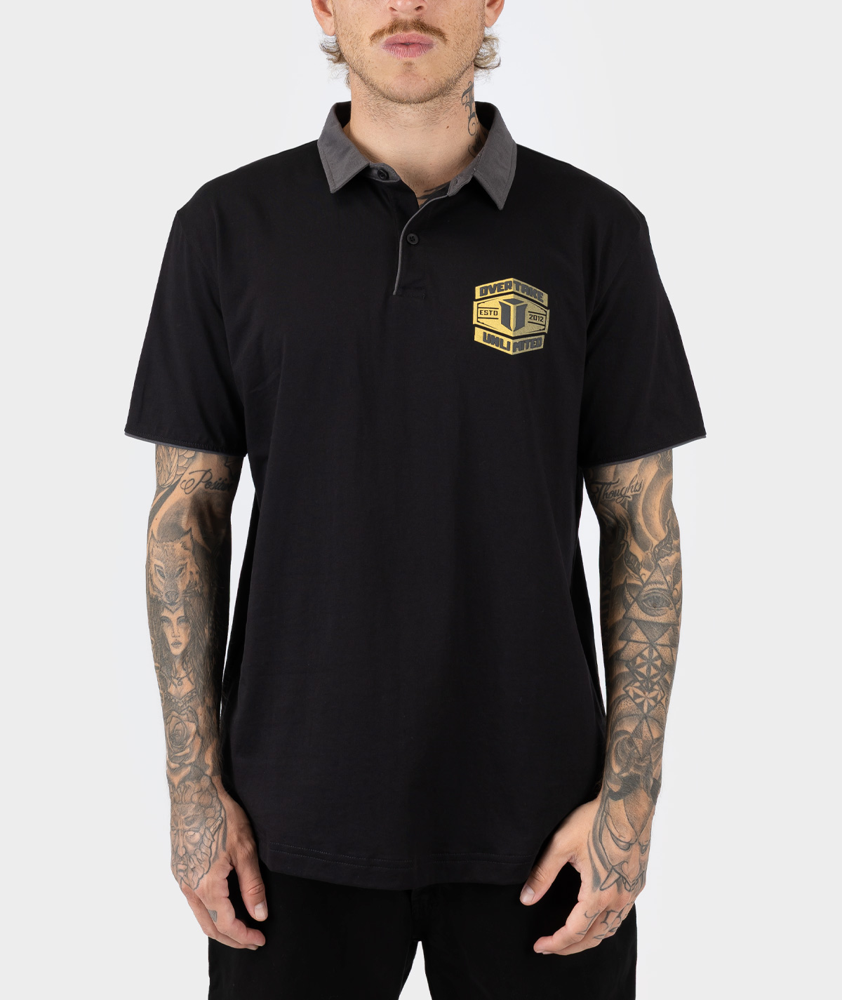- Etiqueta bordada diferencial Overtake en la cintura trasera