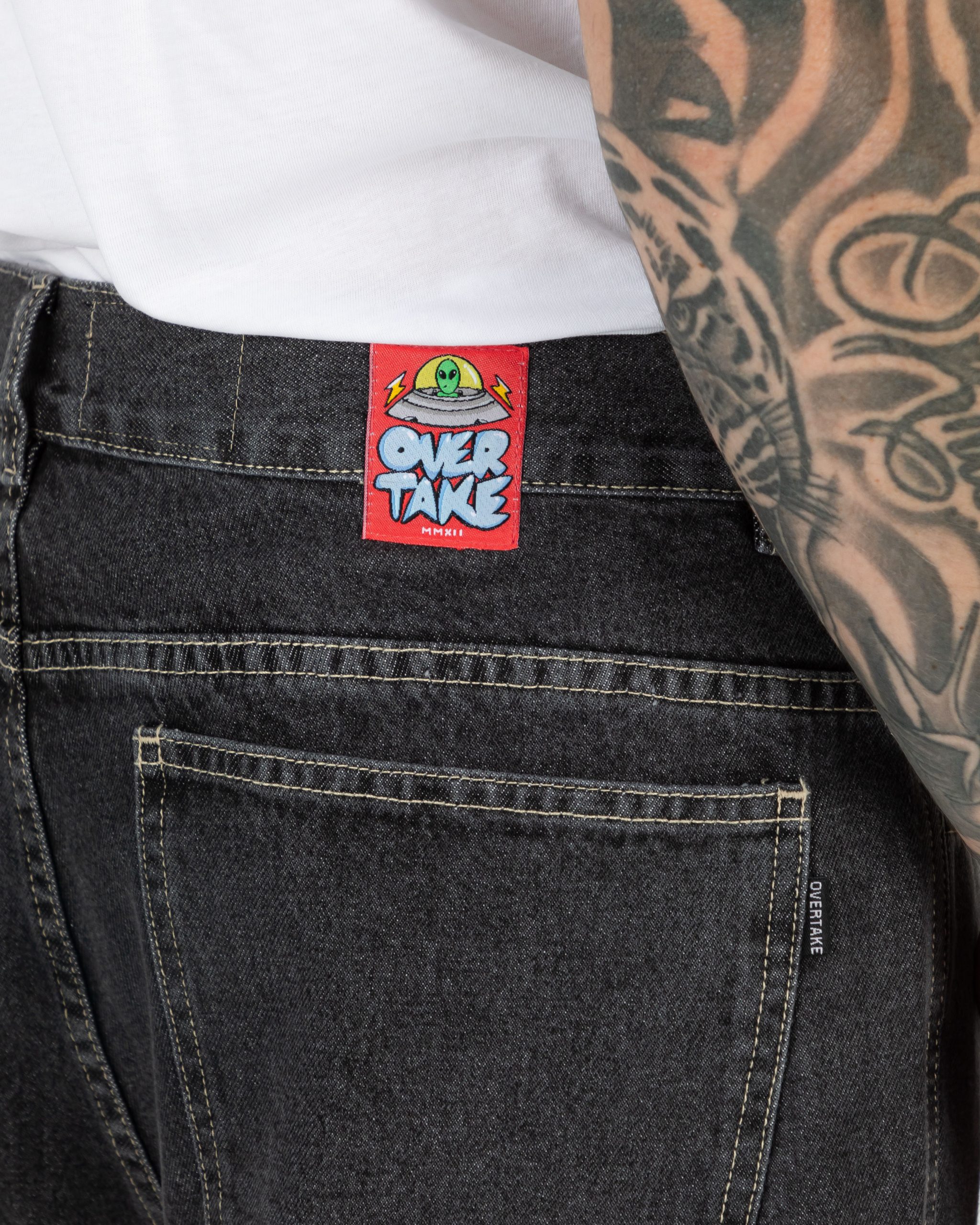 - Etiqueta bordada diferencial Overtake en la cintura trasera