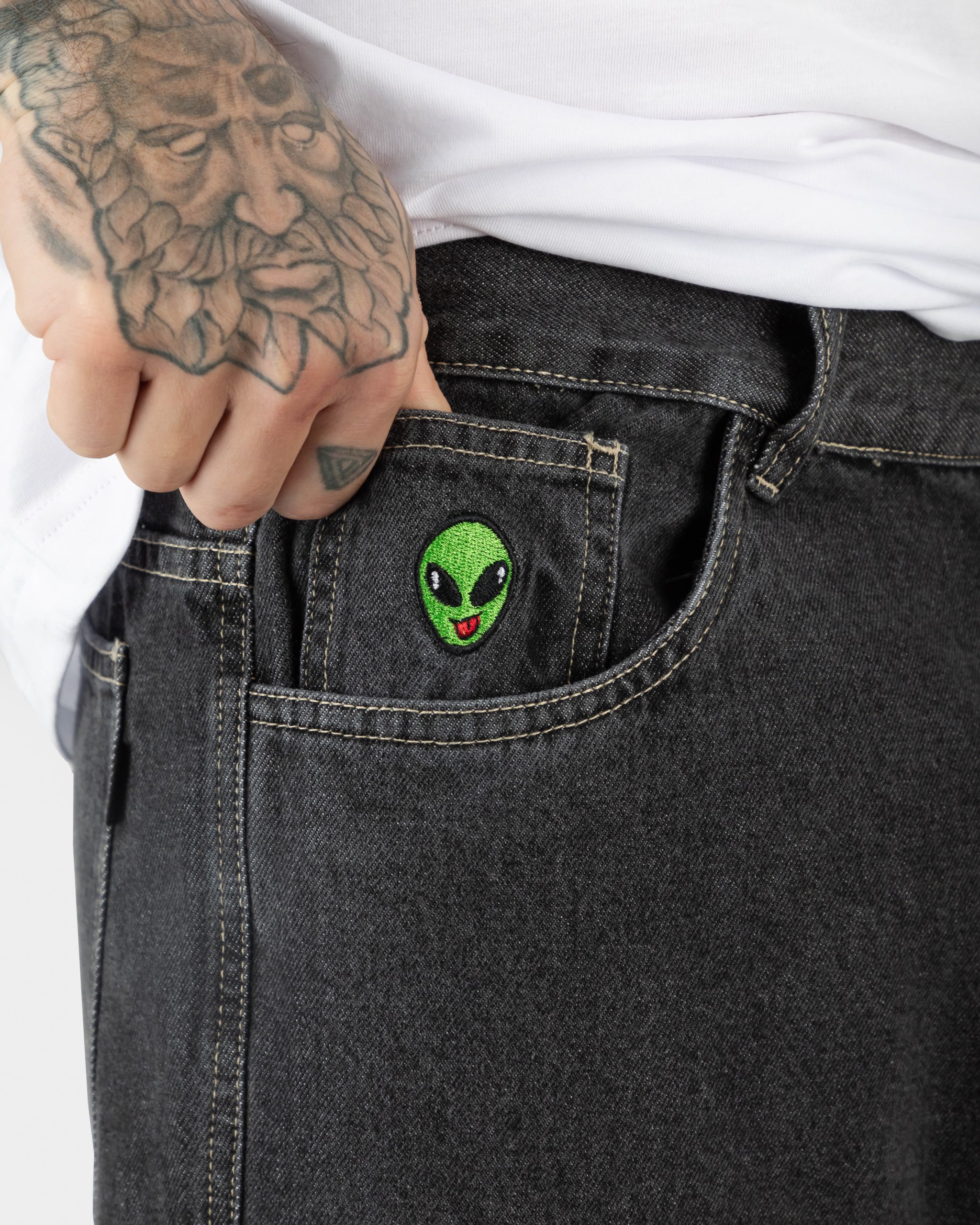 - Bordado de Fly 👽 en bolsillo secreto