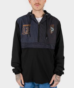 El modelo mide 1.78, pesa 65 kg y está usando talla L