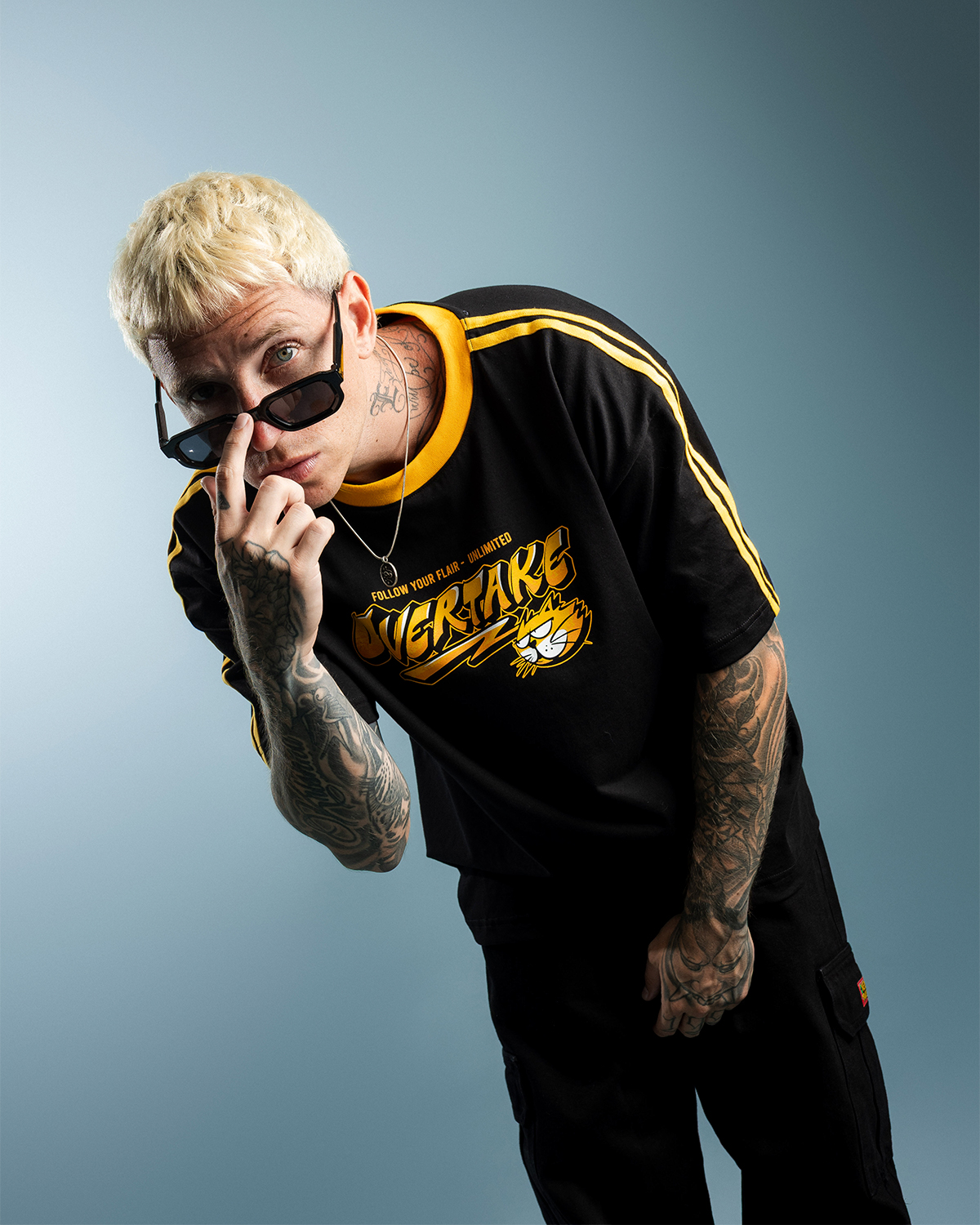 • Estampado 3D en diseño de la espalda “OVERTAKE” y contorno del diseño