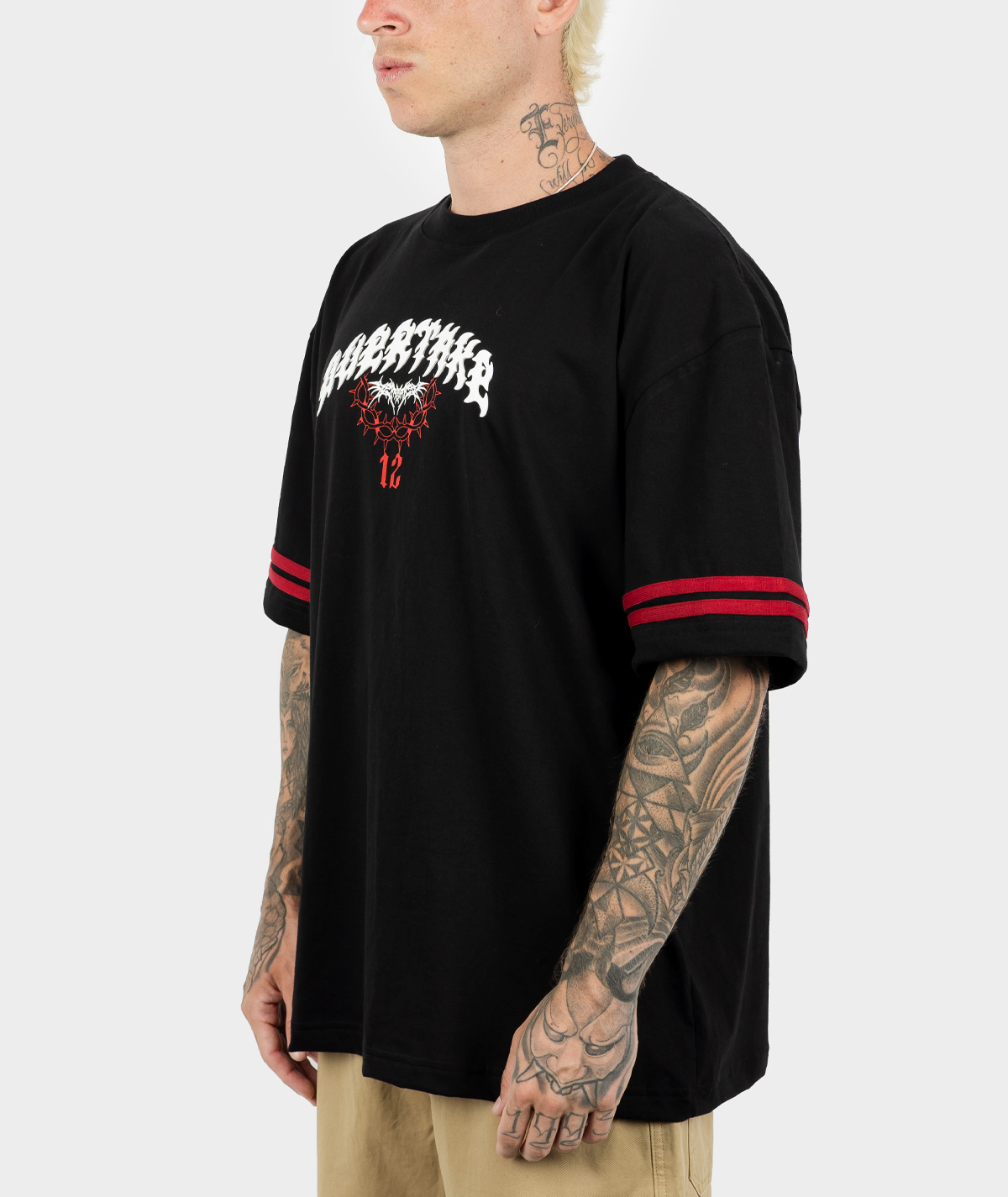 - Líneas estampadas en ambas mangas color ROJO a juego con el diseño